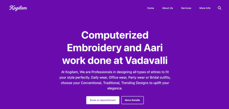 At Kogilam, We are Professionals in designing all types of attires to fit your style perfectly. Daily wear, Office wear, Party wear or Bridal outfits, choose your Conventional, Traditional, Trending Designs to uplift your elegance.